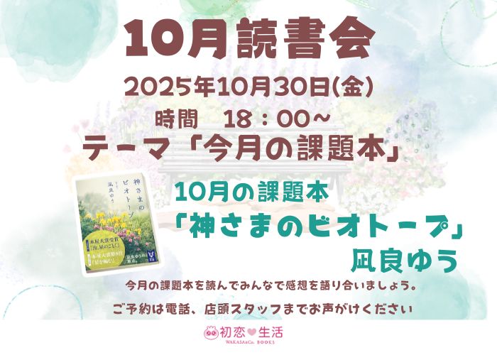 10月読書会を開催します!今月のテーマは10/24(金)「音楽のオススメ本」・10/30(木)「10月の課題本 神さまのビオトープ」です