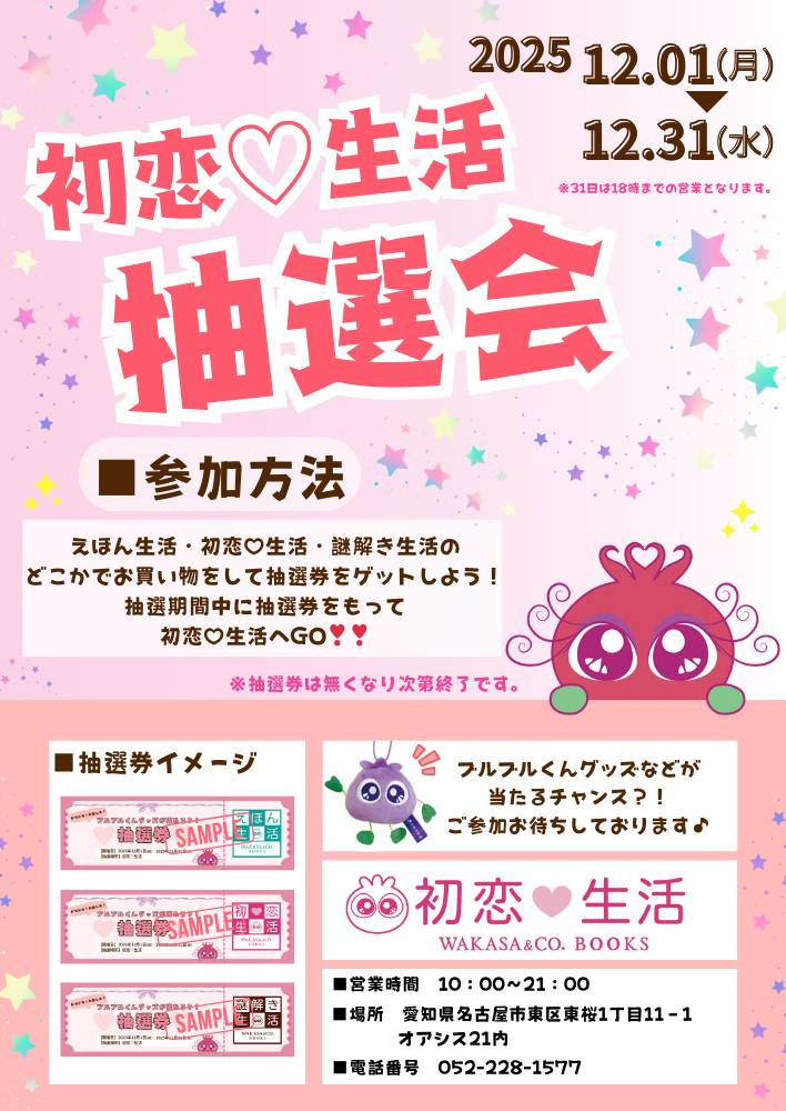 12月1日(月)~12月31日(水)の期間、初恋生活にて抽選会を開催いたします。