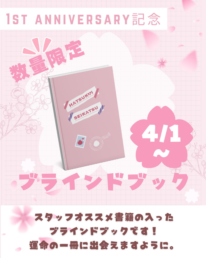 初恋生活では、一周年を記念して数量限定、スタッフオススメ書籍が入ったブラインドブックを販売いたします。
